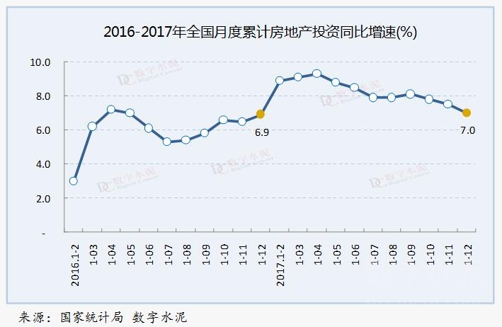 2017年,全国月度累计房地产开发投资增速年初处于持续上升走势,但从5月份开始增速连续下行,9月份短暂回升后再次快速下行,全年增速与去年相比仅略有提升。房地产开发企业施工面积和新开工面积同比保持增长,但增速均不及去年同期。房地产开发企业土地购置面积则较去年同期大幅增长。