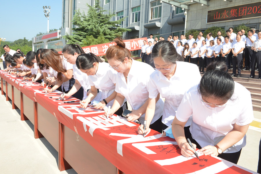 最后,在集团领导的带领下,全体人员依次在印有“山水集团2020年质量月活动启动仪式”的横幅上郑重签名,许下一份质量承诺,为集团持续提升产品质量贡献自己的一份力量。