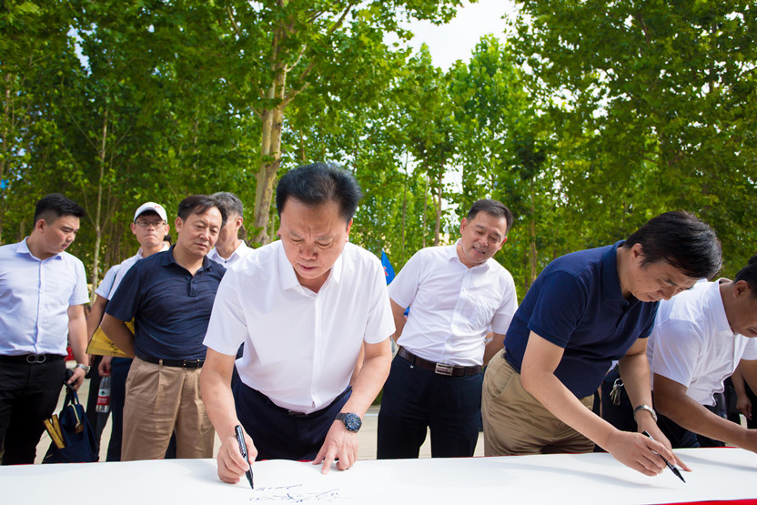 随后,中国水泥协会副会长孔祥忠,集团副董事长宓敬田,集团副总经理、鲁东运营区总经理李荣金,原潍坊水泥厂党委书记、厂长杜德福,原潍坊水泥厂党委书记、厂长、建材局长李春山,潍坊山水总经理曾庆梅共同为企业发展里程纪念碑揭幕。