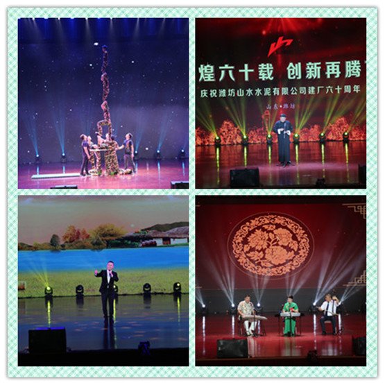 锣鼓喧天庆华诞,热闹活力展笑颜;春华秋实六十载,创新发展谱新篇。7月21日,山水集团潍坊公司隆重举行以“辉煌六十载,创新再腾飞”为主题的建厂六十周年庆典活动。中国水泥协会、山东省水泥协会、山东省水泥质监站、山东省产品质量监督检验研究院等有关单位的领导,集团总部、集团六大运营区领导、潍坊山水退休老职工代表、大客户代表、供户代表、全体在职职工及新闻媒体共计1700余人出席了此次庆典。