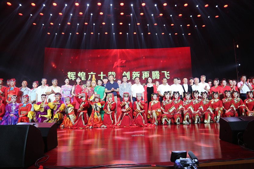 19时30分,伴随着歌舞《欢聚一堂》,“辉煌六十载,创新再腾飞”庆典晚会在潍坊鲁台会展中心拉开帷幕。随后,独具地域特色的歌曲、小品、舞蹈、琴书等精彩节目依次登场,给观众带来一场视觉与听觉的盛宴。