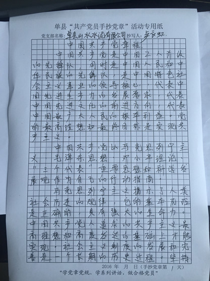 单县公司手抄党章