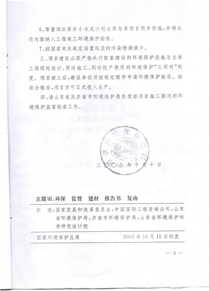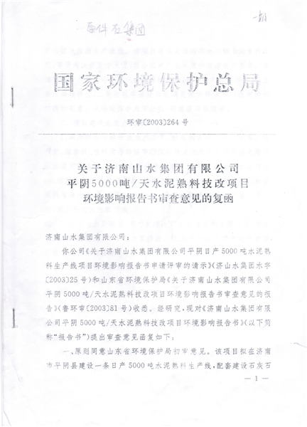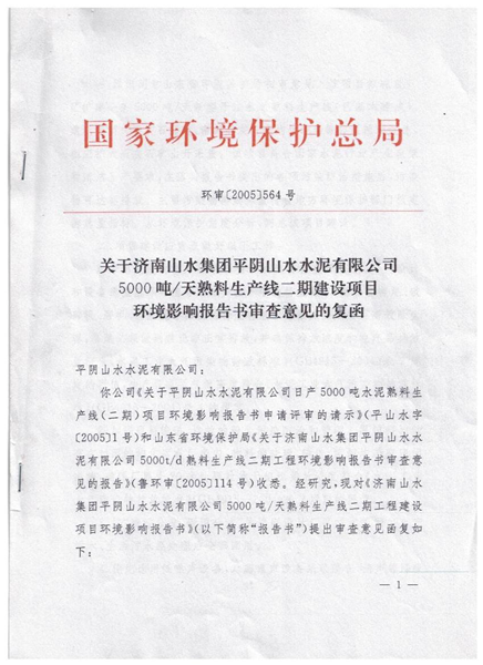 水泥磨环评批复文号 济环建审【2005】60号