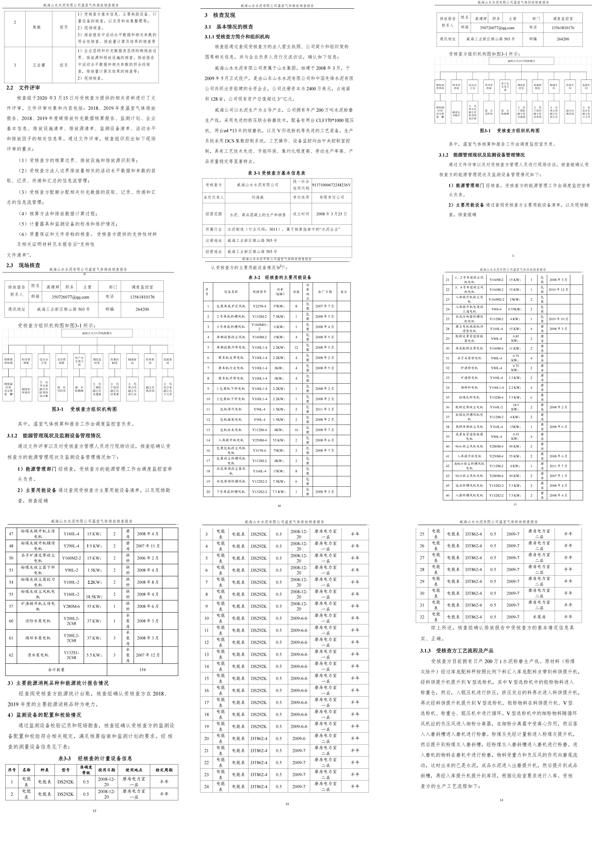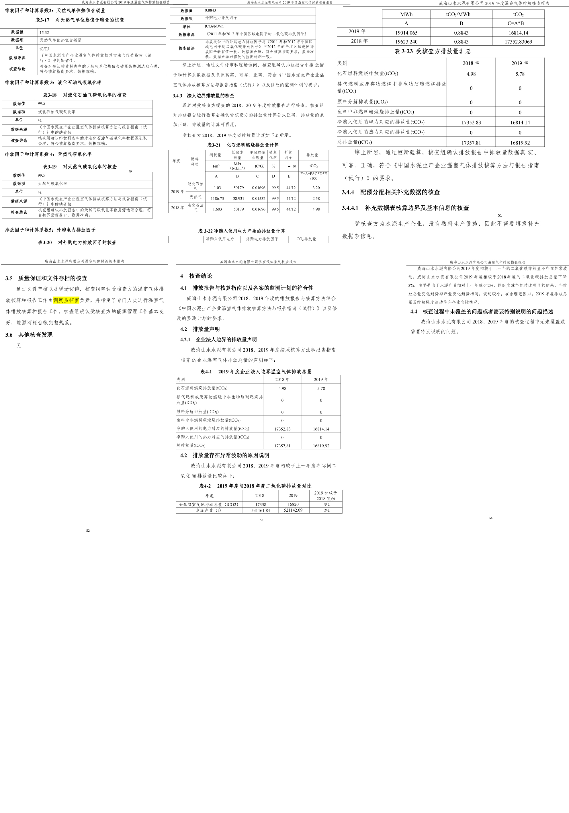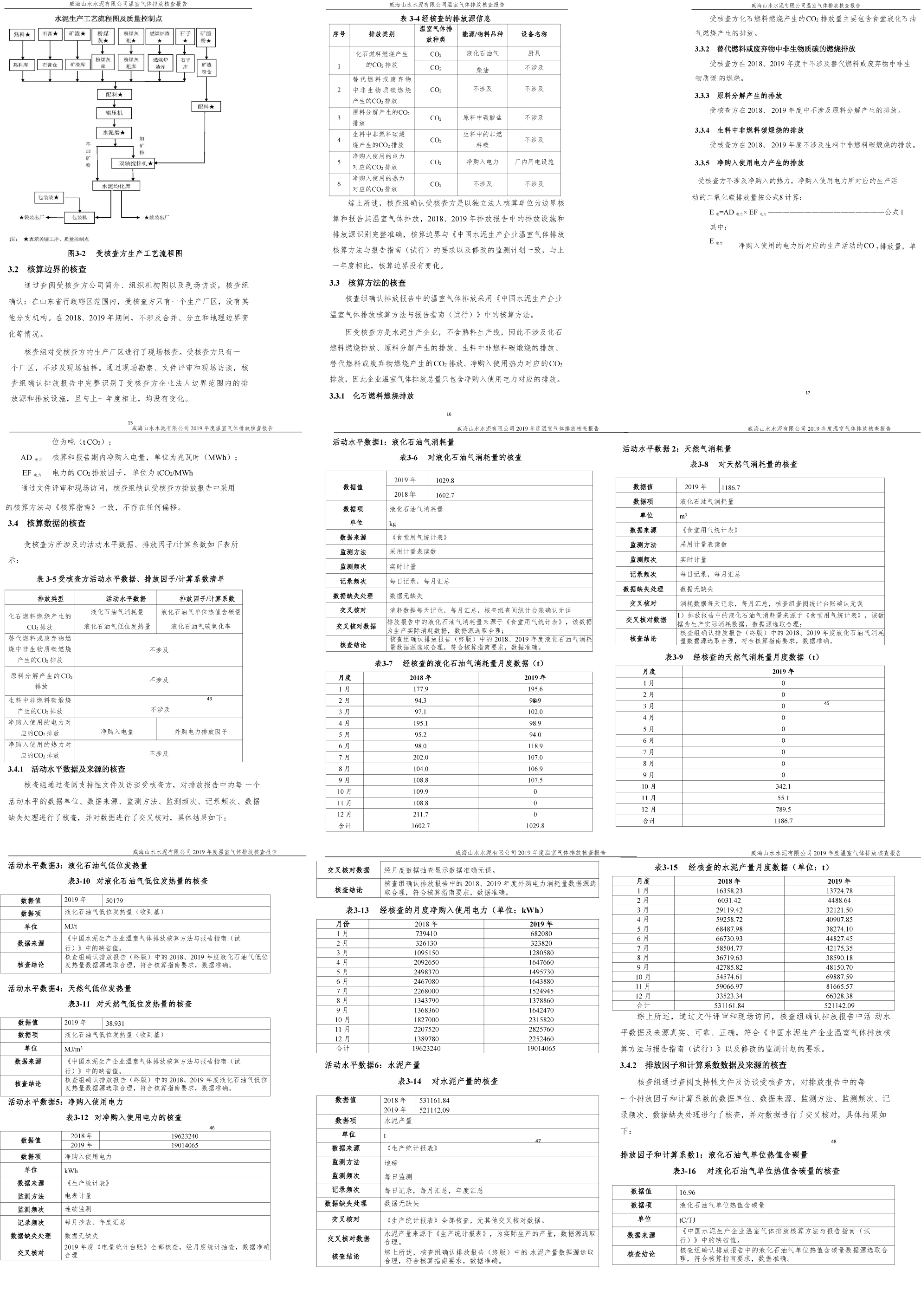 威海山水水泥有限公司2019年度温室气体排放核查报告