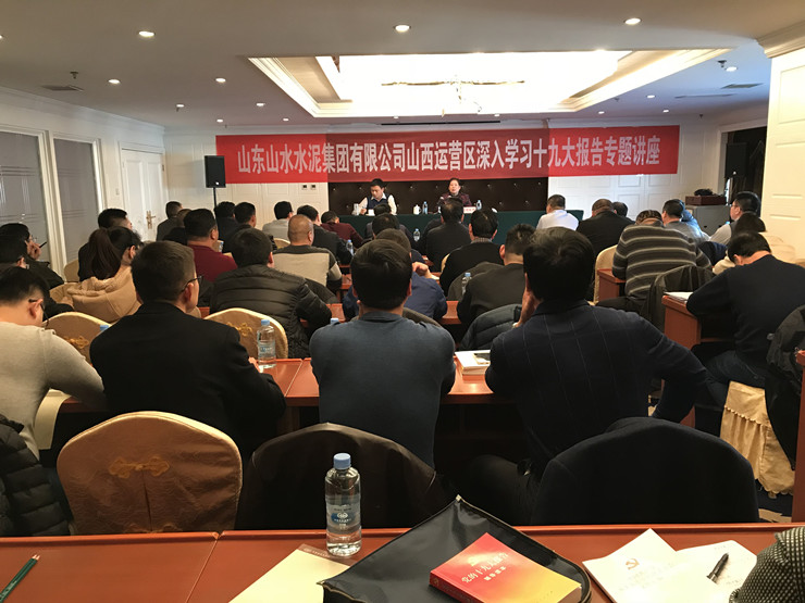 11月20日,山西山水水泥有限公司在华康帝景酒店九楼会议室召开“十九大专题辅导讲座”。特邀太原市委党校党史党建教研室主任、党史党建学科带头人郑培君教授前来讲授。运营区班子成员、部室负责人、入党积极分子以及各子公司班子成员、支部委员共计约70人参加讲座。讲座由公司支部书记王超主持。